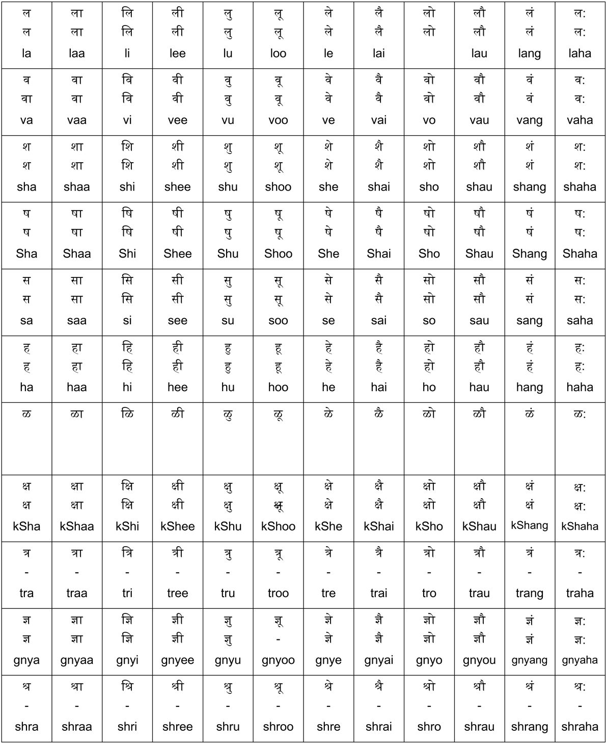 | क्ष क्ष kSha | त्र - tra | ज्ञ ज्ञ gnya | श्र - shra |