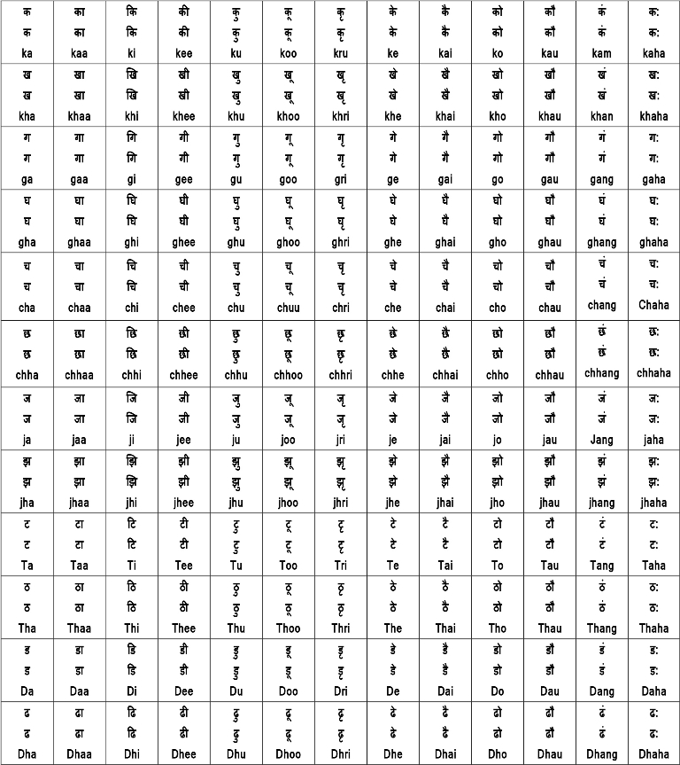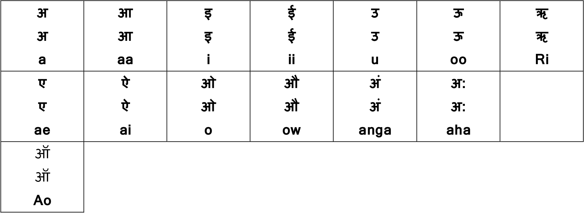 | अं अं | ं | Ang |