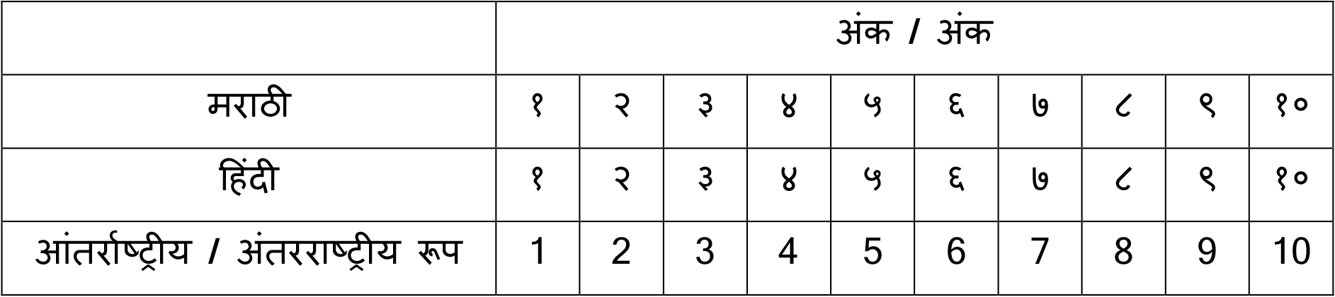 | Number | संख्या | संख्या |