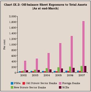 9.17 The high ratio in respect of foreign banks could be somewhat misleading because of off-balance sheet exposures, which constitute a sizeable proportion of their total business (Chart IX.2). Although such business entails cost, it is not captured in the assets as a result of which the operating cost to asset ratio is inflated.