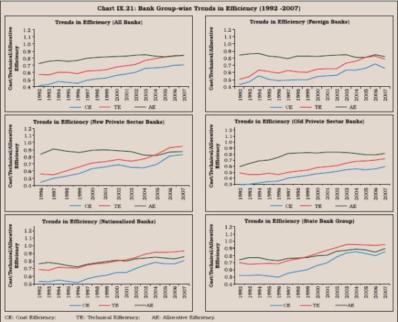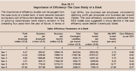 9.10 There is a large body of literature on the subject which throws light on alternative methods of assessing efficiency and productivity of the banking sector (Box IX.2).