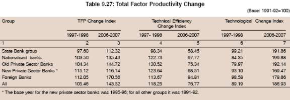 9.107 On the whole, the confluence of several well articulated and some fortuitous factors contributed to the improved efficiency and productivity of the banking sector.