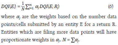 by Debasis Nandi and Sujeesh Kumar^ In a complex data ecosystem, ensuring the quality of data becomes challenging for central bankers, particularly in a regulatory landscape. As measuring data quality is contextual and subjective, it is emphasized that the need for tailored measurement strategies to develop various data quality dimensions to measure the quality of data effectively. This article provides an approach for constructing a data quality index (DQI) to evaluate the quality of the data submitted by the regulated entities. The article outlines a stepwise approach for constructing the data quality index at various levels. The proposed DQI framework enables central banks and regulators to monitor and improve data quality systematically enhancing institutional credibility, regulatory and supervisory efficiency, and public trust. Introduction Central Banks play an important role, inter alia, in maintaining financial stability and ensuring the health of the banking sector. Daily operations of the banking system produce large amount of data. Such data is an important asset for institutions like central banks, multilateral bodies, and many other organizations particularly entrusted with data collection and its maintenance to support data driven policymaking. The ultimate objective of data management is the production and dissemination of quality data–a precious asset in the present world. A key part of the functioning of the central banks involves the collection of huge volume of banking and financial sector data from the regulated entities (REs). In a complex and dynamic data ecosystem, measuring data quality also challenging. Automation has an important role in ensuring the quality of data being collected, processed, and maintained at the data repository of the central bank. It will enable to effectively monitor various economic indicators, obtaining regulatory and supervisory insights and facilitating data driven policies for the well-being of the public. Over the years, the data collection and dissemination process has undergone several transformational changes due to the rapid technological advancements witnessed across the globe. Organizations, particularly central banks have adopted advanced statistical techniques and technology tools to validate the data generation process and best efforts have been made to address emerging data gaps and challenges. While addressing the challenges, an evolving multitude of non-traditional data is adding more complexity in the data ecosystem. Girard (2020) noted that one of the of organizational challenges for managing data in the (AI) era is equipping staff to the latest tools and technologies. Measuring data quality is subjective in nature as the measurement involves various techniques and depends on the type of data produced. A well-defined structure of data quality framework with suitable dimensions is an appropriate way to measure the quality of data (Van G.B. 2023). Motivated by this fact, a structural approach for measuring various dimensions of data quality and deriving data quality indices for the data generation and collection process have been attempted. With this backdrop, this article has the primary objective of providing an approach to measure the data quality considering various data quality dimensions defined in the literature. The existing data quality frameworks by various organisations does not provide specific formula for calculating various measures of data quality dimensions, while it specifies broad guidelines for assessing various quality dimensions. Besides, frameworks do not suggest a data quality index (DQI) measure for data collection process and dissemination process separately. In the Indian context, the Reserve Bank of India (RBI) has recently published supervisory data quality index (sDQI) scores for the supervised entities based on four data quality dimensions viz., accuracy, completeness, timeliness and consistency. The sDQI provides a measure of the supervisory data quality, forming the basis for supervisory examinations (RBI,2025). The sDQI is intended to measure the data quality of select supervisory returns in a supervisory data collection perspective. In the central banking context, data provided by the regulated entities not merely for the supervisory purpose, while it is being used for regulatory, policy formulation, statistical data dissemination, research and various other purposes. The approach outlines in this article is not limited to supervisory data; it encompasses all types of data collected from regulatory entities through prescribed returns. Furthermore, the DQI presented in this article extends beyond the four data quality dimensions, covering data collection and dissemination aspects. This article thus helps bridge existing gaps in this aspect. The rest of the paper is structured into five sections. The next section presents a brief review of the literature. In Section III a description of various data quality dimensions is given, while Section IV outlines the method to construct a data quality index using several dimensions discussed in section III. Finally, section V concludes the article. Data quality has been defined differently across the literature. Data quality is the extent to which the data satisfies the users’ needs (Wang, 1998). One of the widely accepted definitions of data quality by Wang and Strong (1996) is ‘fitness for use’. While it was argued by Strong et al. (1997), that fitness for usage varies for different users under different circumstances and therefore data quality is relative and cannot be evaluated independent of users. Federal Committee on Statistical Methodology (FCSM) defined data quality as the degree to which data capture the desired information using appropriate methodology in a manner that sustains public trust. The importance of data quality was highlighted by several authors. Poor quality of data leads to wrong conclusions and substandard decision mak