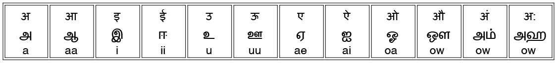 1.1 स्वर உயிரெழுத்துக்கள் (उयिरेलुत्तुक्कल) Vowels