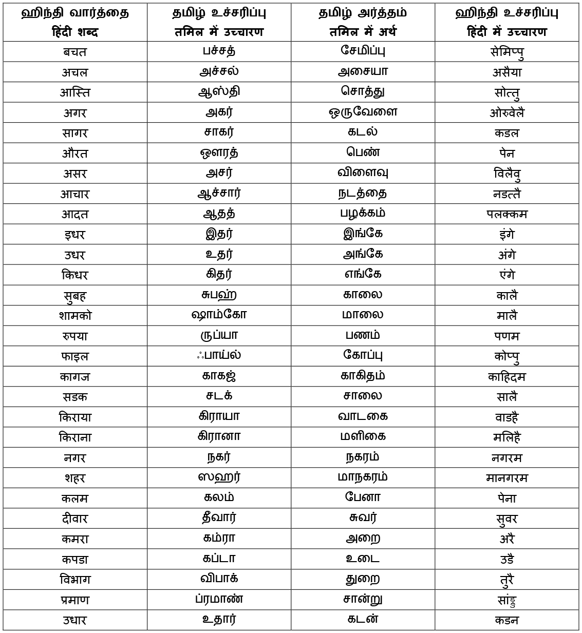 (தமிழ் तमिल – ஹிந்தி हिंदी)