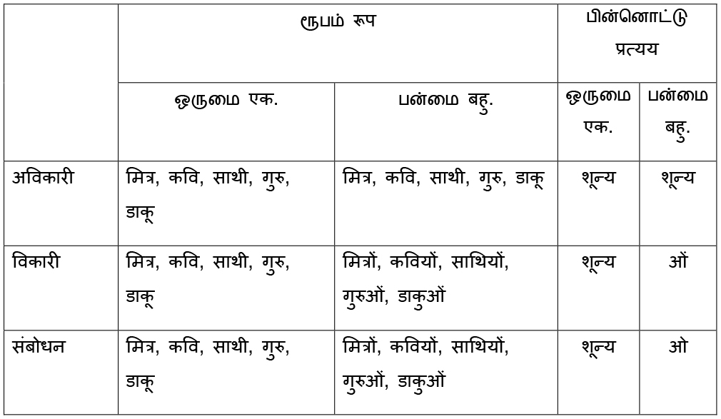 (1) ‘ஆ’ என முடியும் ஆண்பால் சொற்கள் आकारांत पुल्लिंग