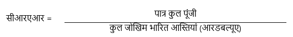 सीआरएआर की गणना निम्नानुसार होगी: ![]() पूंजी पर्याप्तता उद्देश्यों के लिए पूंजीगत निधियों (पात्र कुल पूंजी) में टियर I और टियर II पूंजी शामिल होगी जैसा कि नीचे परिभाषित किया गया है। सीआरएआर मानदंडों के अनुपालन के उद्देश्य से कुल टियर II पूंजी को कुल टीयर I पूंजी के अधिकतम 100 प्रतिशत तक सीमित रखी जाएगी। बैंकों के विभिन्न श्रेणी के ऋण जोखिम के लिए जोखिम भार अनुबंध-2 में उल्लिखित हैं। 4.1 टियर I पूंजी टियर I में निम्नलिखित मदें शामिल है: (i) मताधिकार रखनेवाले नियमित सदस्यों से प्राप्त चुकता शेयर पूँजी2। (ii) सहायक/नाममात्र के सदस्यों से प्राप्त अंशदान जहाँ उप-विधियों के अनुसार उन्हें शेयरों के आबंटन की अनुमति है और बशर्ते ऐसे शेयरों के आहरण पर प्रतिबंध हो, जैसा कि नियमित सदस्यों पर लागू होता है। (iii) सहायक और नाममात्र के सदस्यों से वसूल किए गए अंशदान/अप्रतिदेय प्रवेश शुल्क जिसे अलग से उपयुक्त शीर्ष के अंतर्गत "आरक्षित निधियाँ" के रूप में धारित किया जाता है, क्योंकि वे अप्रतिदेय हैं। (iv) स्थायी गैर-संचयी अधिमान्य शेयर (पीएनसीपीएस), जो अनुबंध-3 में निर्दिष्ट नियामक आवश्यकताओं का अनुपालन करते हैं। (v) लेखापरीक्षित खातों के अनुसार मुक्त आरक्षित निधि। बाहरी देनदारियों को पूरा करने के लिए सृजित भंडार, यदि कोई हों, को टियर-I कैपिटल में शामिल नहीं किया जाना चाहिए। मुक्त आरक्षित निधियों में उन सभी आरक्षित निधियों / प्रावधानों को शामिल नहीं किया जाएगा जिन्हें प्रत्याशित ऋण हानियों, धोखाधड़ी आदि के कारण होने वाली हानियों, निवेशों तथा अन्य आस्तियों के मूल्यह्रास तथा अन्य बाह्य देयताओं को पूरा करने के लिए सृजित किया गया हो। उदाहरण के लिए ‘भवन निधि' शीर्ष के अंतर्गत धारित राशियां मुक्त आरक्षित निधि के हिस्से के रूप में मानी जाने के लिए पात्र होंगी जबकि ``अशोध्य और संदिग्ध आरक्षित निधियों '' को उसमें शामिल नही किया जाएगा । (vi) संपत्ति की बिक्री प्रक्रिया से उत्पन्न होने वाले अधिशेष को दर्शानेवाली पूंजीगत आरक्षित निधि। (vii) स्थायी ऋण लिखत (पीडीआई) जो अनुबंध-4 में निर्दिष्ट नियामक आवश्यकताओं का अनुपालन करते हैं। (viii) लाभ और हानि खाते में कोई अधिशेष (निवल) अर्थात, देय लाभांश, शिक्षा निधि, अन्य निधि, जिसका उपयोग परिभाषित किया गया है, संपत्ति हानि, यदि कोई हो, आदि के लिए विनियोग के बाद शेष राशि है। (ix) आयकर अधिनियम, 1961 की धारा 36(1) (viii) के तहत सृजित विशेष रिजर्व में बकाया राशि। (x) पुनर्मूल्यांकन रिज़र्व, जो बैंक की आस्ति के पुनर्मूल्यांकन के परिणामस्वरूप उसकी वहन राशि में परिवर्तन से उत्पन्न होता है, को निम्नलिखित शर्तों को पूरा करने के अधीन 55 प्रतिशत की छूट पर टियर 1 पूंजी के रूप में माना जा सकता है: