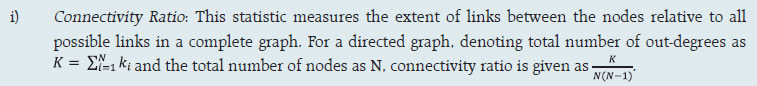 For determining the MRC for cash, equity derivatives and currency derivatives segment, CCs calculate the credit exposure arising out of a presumed simultaneous default of top two CMs. The credit exposure for each CM is determined by assessing the close-out loss arising out of closing open positions (under stress testing scenarios) and the net pay-in/ pay-out requirement of the CM against the required margins and other mandatory deposits of the CM. The MRC or average stress test loss of the month is determined as the average of all daily worst case loss scenarios of the month. The actual MRC for any given month is determined as at least the higher of the average stress test loss of the month or the MRC arrived at any time in the past. For the debt segment, the trading volume is minimal, and hence the MRC for the core SGF is calculated as higher of ₹4 crore or aggregate losses of top two CMs, assuming close out of obligations at a loss of four per cent less required margins. The tri-party repo segment and commodity derivatives segment also follow the same stress testing guiding principles as prescribed for equity cash, equity derivatives and currency derivatives segments. For commodity derivatives segment, however, MRC is computed as the maximum of either credit exposure on account of the default of top two CMs or 50 per cent of credit exposure due to simultaneous default of all CMs. Further, the minimum threshold value of MRC for commodity derivatives segment of any stock exchange is ₹10 crore. CCs carry out daily stress testing for credit risk using at least the standardized stress testing methodology prescribed by SEBI for each segment. Apart from the stress scenarios prescribed for cash market and derivatives market segments, CCs also develop their own scenarios for a variety of ‘extreme but plausible market conditions’ (in terms of both defaulters’ positions and possible price changes in liquidation periods, including the risk that liquidating such positions could have an impact on the market) and carry out stress testing using self-developed scenarios. Such scenarios include relevant peak historic price volatilities, shifts in other market factors such as price determinants and yield curves, multiple defaults over various time horizons and a spectrum of forward-looking stress scenarios in a variety of extreme but plausible market conditions. Also, for products for which specific stress testing methodology has not been prescribed, CCs develop extreme but plausible market scenarios (both hypothetical and historical) and carry out stress tests based on such scenarios and enhance the corpus of SGF, as required by the results of such stress tests. 1.6 Interconnectedness – Network Analysis Matrix algebra is at the core of the network analysis, which uses the bilateral exposures between entities in the financial sector. Each institution’s lending to and borrowings from all other institutions in the system are plotted in a square matrix and are then mapped in a network graph. The network model uses various statistical measures to gauge the level of interconnectedness in the system. Some of the important measures are given below: ii) Cluster coefficient: Clustering in networks measures how interconnected each node is. Specifically, there should be an increased probability that two of a node’s neighbours (banks’ counterparties in case of a financial network) are neighbours to each other also. A high clustering coefficient for the network corresponds with high local interconnectedness prevailing in the system. For each bank with ki neighbours the total number of all possible directed links between them is given by ki(ki-1). Let Ei denote the actual number of links between bank i’s ki neighbours. The clustering coefficient Ci for bank i is given by the identity: The clustering coefficient (C) of the network as a whole is the average of all Ci’s: iii) Tiered network structures: Typically, financial networks tend to exhibit a tiered structure. A tiered structure is one where different institutions have different degrees or levels of connectivity with others in the network. In the present analysis, the most connected banks are in the innermost core. Banks are then placed in the mid-core, outer core and the periphery (the respective concentric circles around the centre in the diagram), based on their level of relative connectivity. The range of connectivity of the banks is defined as a ratio of each bank’s in-degree and out-degree divided by that of the most connected bank. Banks that are ranked in the top 10 percentile of this ratio constitute the inner core. This is followed by a mid-core of banks ranked between 90 and 70 percentile and a 3rd tier of banks ranked between the 70 and 40 percentile. Banks with a connectivity ratio of less than 40 per cent are categorised in the periphery. iv) Colour code of the network chart: The blue balls and the red balls represent net lender and net borrower banks respectively in the network chart. The colour coding of the links in the tiered network diagram represents the borrowing from different tiers in the network (for example, the green links represent borrowings from the banks in the inner core). (a) Solvency contagion analysis The contagion analysis is in the nature of a stress test where the gross loss to the banking system owing to a domino effect of one or more banks failing is ascertained. We follow the round by round or sequential algorithm for simulating contagion that is now well known from Furfine (2003). Starting with a trigger bank i that fails at time 0, we denote the set of banks that go into distress at each round or iteration by Dq, q = 1,2, …For this analysis, a bank is considered to be in distress when its Tier I capital ratio goes below 7 per cent. The net receivables have been considered as loss for the receiving bank. (b) Liquidity contagion analysis While the solvency contagion analysis assesses potential loss 