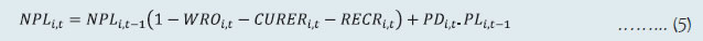 1.1 Scheduled Commercial Banks (a) Banking stability indicator (BSI) and map The banking stability map and indicator present an overall assessment of changes in underlying conditions and risk factors that have a bearing on the stability of the banking sector during a period. The six composite indices represent risk in six dimensions - soundness, asset quality, profitability, liquidity, efficiency and sensitivity to market risk. Each composite index is a relative measure of risk during the sample period used for its construction, where a higher value would mean higher risk in that dimension. The financial ratios used for constructing each composite index are given in Table 1. Each financial ratio is first normalised for the sample period using the following formula: where Xt is the value of the ratio at time t. If a variable is negatively related to risk, then normalisation is done using 1-Yt. Composite index of each dimension is then calculated as a simple average of the normalised ratios in that dimension. Finally, the banking stability indicator is constructed as a simple average of these six composite indices. Thus, each composite index and the overall banking stability indicator takes values between zero and one. (b) Macro stress test Macro stress test evaluates the resilience of banks against adverse macroeconomic shocks. It attempts to assess the impact of such shocks on the capital ratios of banks1 over a one-and-half to two-year horizon, under a baseline and two adverse scenarios. The test encompasses credit risk, market risk and interest rate risk in the banking book. The salient features are as below: I. Macro-scenario design: The test envisages three scenarios - a baseline and two hypothetical adverse macro scenarios. While the baseline scenario is derived from the forecasted path of select macroeconomic variables, the two adverse scenarios are derived based on hypothetical stringent stress scenario narratives and by performing simulations using the following Vector Autoregression with Exogenous Variables (VARX) model, with GDP growth, CPI inflation, repo rate and lending spread as the endogenous variables and US GDP growth and US-VIX as exogeneous variables. II. Projection of key financial variables: Slippage ratio, interest income and interest expense are projected at bank-level using panel regression models for each bank group. GNPA ratio and provision are projected using structural models. Non-interest income [comprising of (a) fee income and (b) other operating income excluding fee income] and non-interest expense are projected based on assumed growth rate of these variables under each scenario. (i) Projection of slippage ratio: The quarterly slippage ratios at bank level are projected using the following panel regression model; Zi,t is the quarterly slippage ratio of bank i during quarter t, Xt is a vector of macroeconomic variables including lending spread and GDP growth, μ'i represents bank-specific fixed effects, λ'it represents adjustments for specific quarters and ε'i,t is an i.i.d. error term. Subsequently, quarterly slippage ratios, Ẑi,t's are computed based on first differences of the regression equation (2) as, (ii) Projection of gross loans and advances: Bank level gross loans and advances are projected by applying growth rate equivalent to nominal GDP growth as, where Li,t represents the gross loans and advances of bank i at the end of quarter t, and gt represents the nominal GDP growth rate during quarter (t-1, t). (iii) Projection of non-performing loans (NPL) or GNPAs: Bank-level GNPAs are projected using the equation, where NPLi,t represents the stock of GNPA of bank i at the end of quarter t, WROi,t, CURERi,t and RECRi,t are write-off, upgradation and recovery rates of bank i during the quarter t respectively, PDi,t is the probability of default (slippage ratio) projected in (3) and PLi,t-1 is the stock of performing loans at the end of quarter t-1. (iv) Projection of performing loans (PL): The stock of performing loans for bank i at the end of quarter t, PLi,t is projected as, (v) Projection of provisions: Provisions of bank i for quarter t are projected as follows, where provisioning coverage ratio (PCR) is assumed at 75 per cent. The loss given default (LGD) during quarter t is derived based on the model of Frye and Jacobs (2012), as below and the parameter k is derived as, PD* and LGD* are long-term average PDs and LGDs and Φ represents the cumulative normal distribution function. (vi) Projection of interest income and expenses: Interest income (as share of interest-earning assets) and interest expenses (as share of interest-bearing liabilities) are modelled as functions of macroeconomic variables (GDP growth and call rate) and bank fixed effects with structure similar to equation (2). Bank-wise projections of these ratios are applied to derive shocks to yield on assets and cost of funds for each bank. (vii) Projection of market risk: Market risk is estimated by applying MTM revaluation of bond exposures (AFS and HFT portfolio) of banks using three inputs, (i) bond exposure, (ii) Macaulay duration, and (iii) interest rate shock, using the bond revaluation formula: where D is the Macaulay duration, r is the risk-free rate, s is credit spread component, t is the time steps until maturity T, V is the market value, Δrt+1 represents the risk-free rate shift and Δst+1 the credit spread shift. Further, equity and foreign exchange risk are also factored into market risk. (viii) Projection of net profit: Net profit is projected as, (ix) Projection of capital: Capital is projected as, (x) Projection of risk weighted assets (RWA): RWA for Credit risk is projected as, where gt represents the nominal GDP growth rate during the period (t, t+1). RWA for market risk and RWA for operational risk are also projected to grow at nominal GDP growth rate. III. Major assumptions: Provisions for income tax are assumed at 30 per cent, 30 per cent and 35 per cent of pro